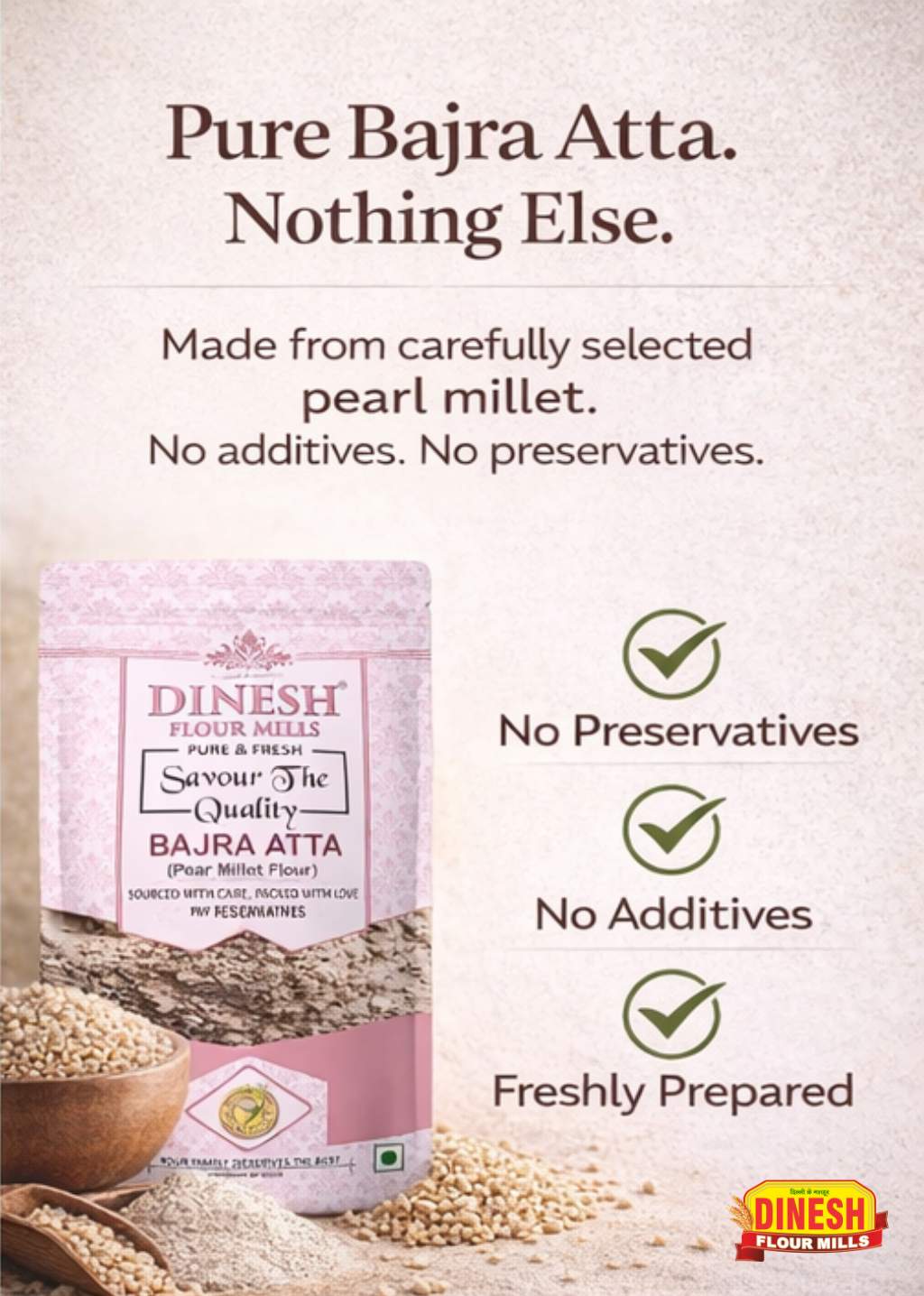 Our Bajra Atta reflects the same promise Dinesh Flour Mills has followed since 1970 — purity, consistency, and trust.
