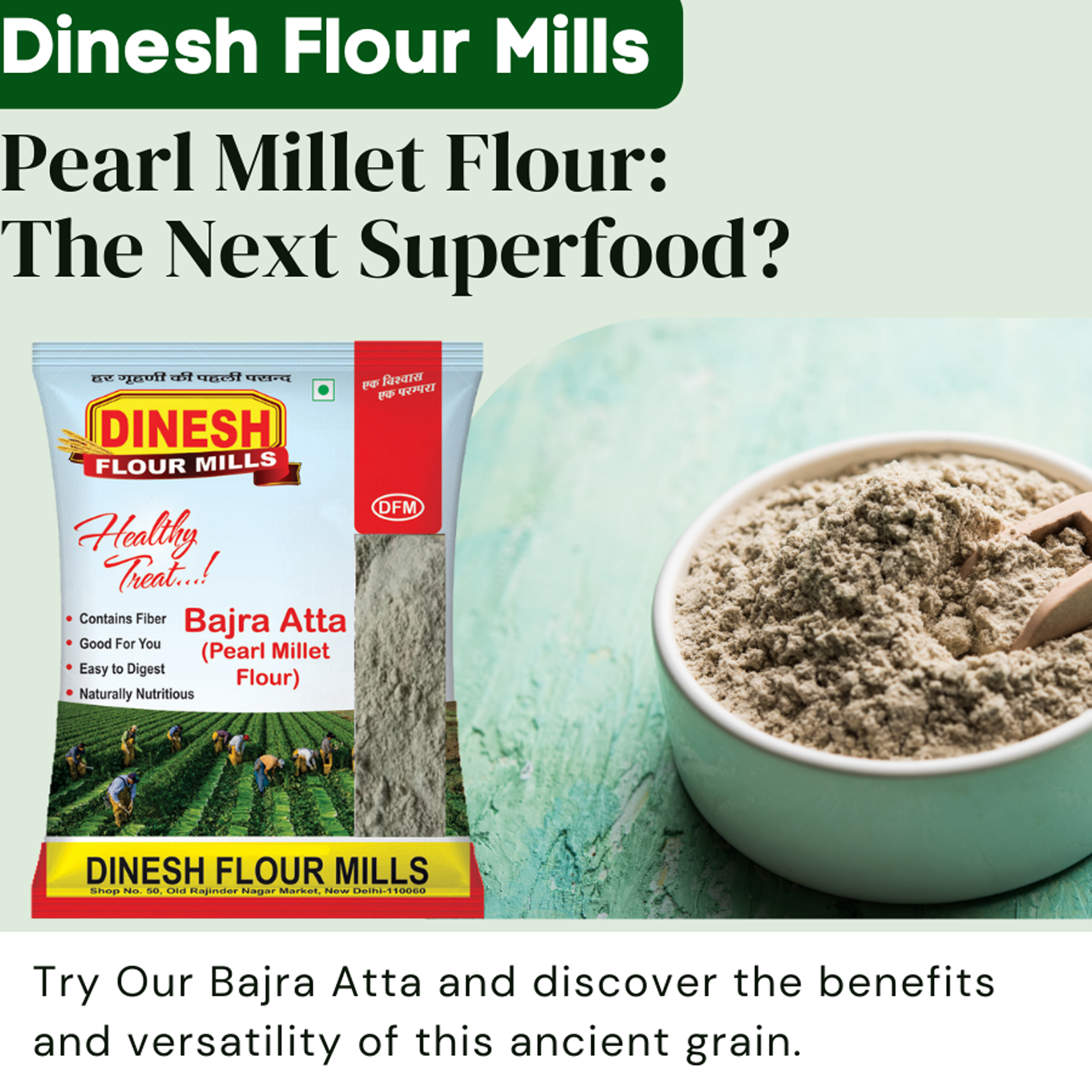 Transform your baking and cooking with Dinesh Flour Mills Bajra Atta, a premium whole grain flour that combines traditional nutritional benefits with modern convenience. Here’s why Bajra Atta should be a staple in your kitchen: