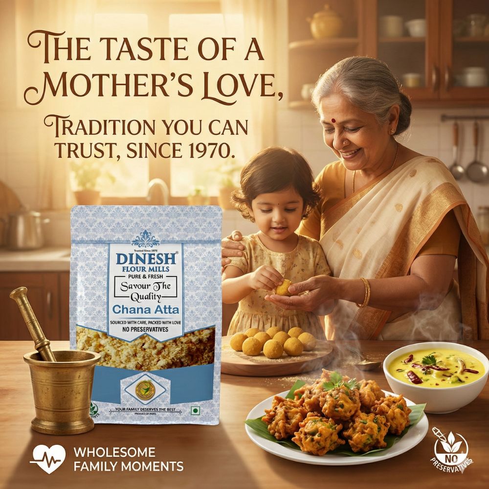 Dinesh Flour Mills Chana Atta is finely ground to ensure smooth blending, easy kneading, and consistent cooking results. Its rich flavor makes it a kitchen essential for enhancing a wide variety of recipes.