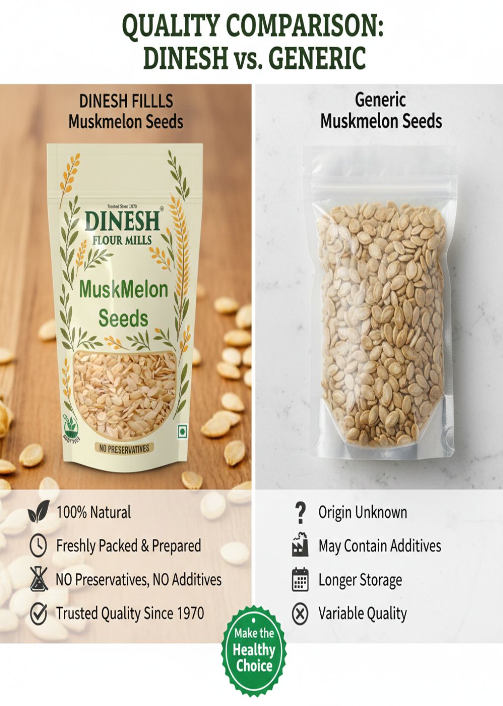 Buy premium muskmelon seeds that are clean, natural, and free from preservatives. Carefully packed fresh for daily kitchen use, roasting, and recipes.